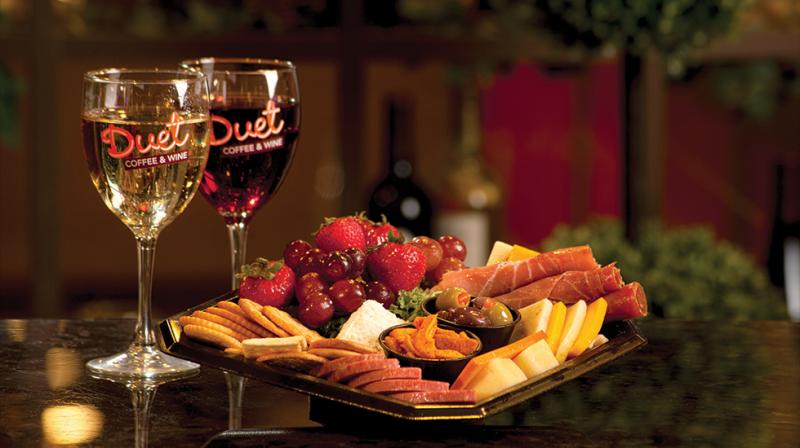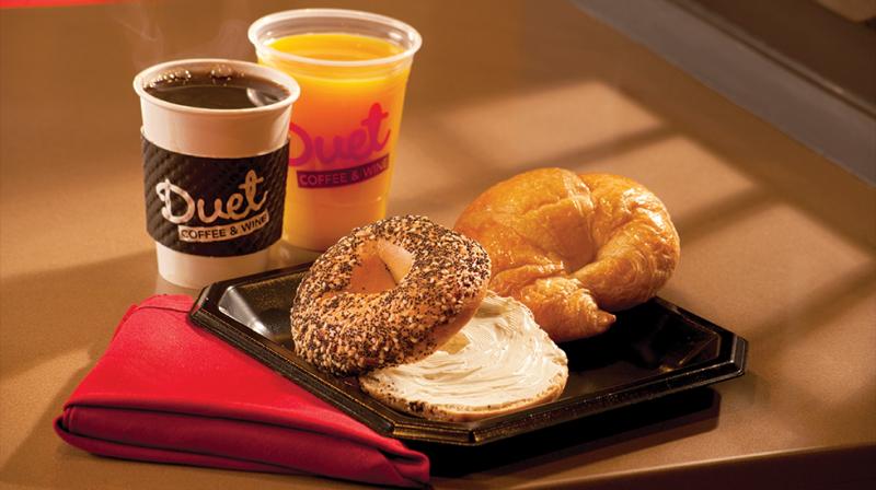 Duet food choices offer something for everyone. Breakfast items include freshly baked pastries, muffins, doughnuts and breakfast sandwiches. Try the salads, sandwiches and many other food selections – perfect with that glass of wine. Enjoy a bottle from our extensive wine list, or sample a variety by the glass.